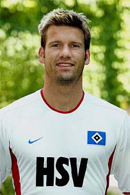 der mann, der schuld ist, daß ich fan eines außergewöhnlichen fußballclubs bin. der mann, der mir damals am letzten spieltag der saison 97/98 in unterhaching nicht ums verrecken sein trikot geben wollte. der mann, der mir damals im grünwalder stadion, als er schon für jahn regensburg spielte, ein überdimensionales autogramm auf den rücken meines st. pauli-trikots kritzelte, das natürlich unser beider nachnamen zierte und selbstverständlich immer noch ziert. da ist er also abgeblieben. ausgerechnet beim h$v. nicht zu fassen. aber ich muß sagen ich mag ihn trotzdem noch, schließlich habe ich ihm viel zu verdanken. freud und, zur zeit, hauptsächlich leid. ich finde, das trikot auf dem foto steht ihm beschießen. braun-weiß paßte eindeutig besser zu ihm.